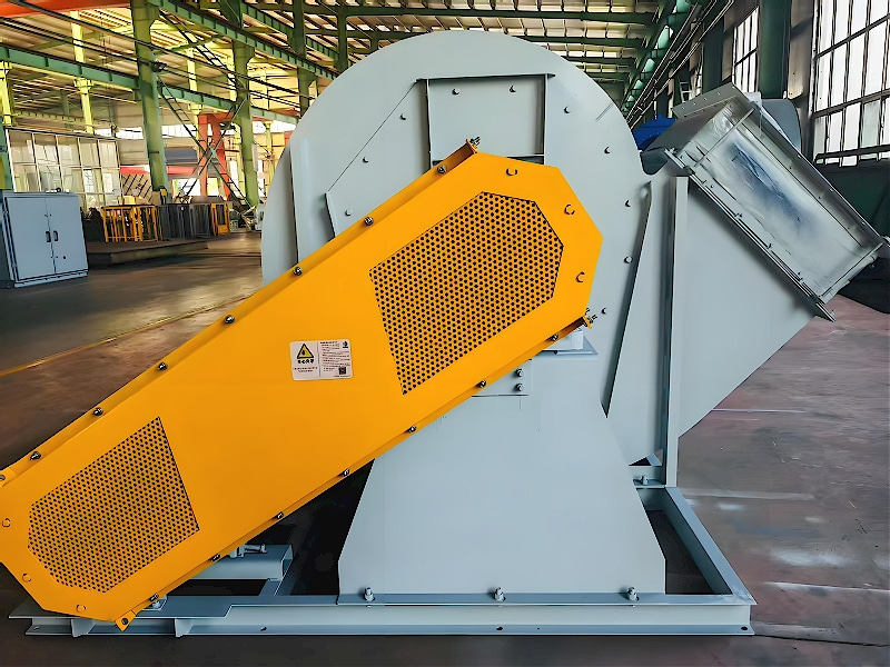 The fan mainly consists of an impeller, housing, air inlet, drive assembly, and motor. The impeller features backward-curved aerodynamic blades, dynamically balanced for smooth and efficient operation. The discharge angle can be customized from 0° to 315°. Drive methods include belt drive, shaft drive, or direct drive, adapting to site conditions. Inspection and cleaning ports are provided for routine checks.